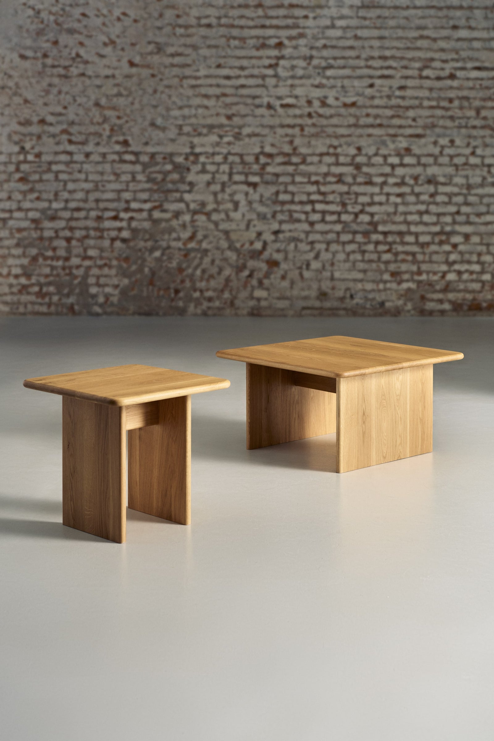 Company you will crave. Cloude is just the perfect solution for any day to day activity - from a morning coffee to late night book reading in bed. The table was designed in order to provide you with the widest range of possibilities. Hence, the two sizes that can be easily adapted to any space - either both at the same time or just one. Whichever you prefer. They differ in height and tabletop size. Each Cloud is made of four boards of the same thickness conjoined together in a way that serves as a bold, but still a versatile piece. Stability, sustainability and timeless design - what you get with Cloud everyday.