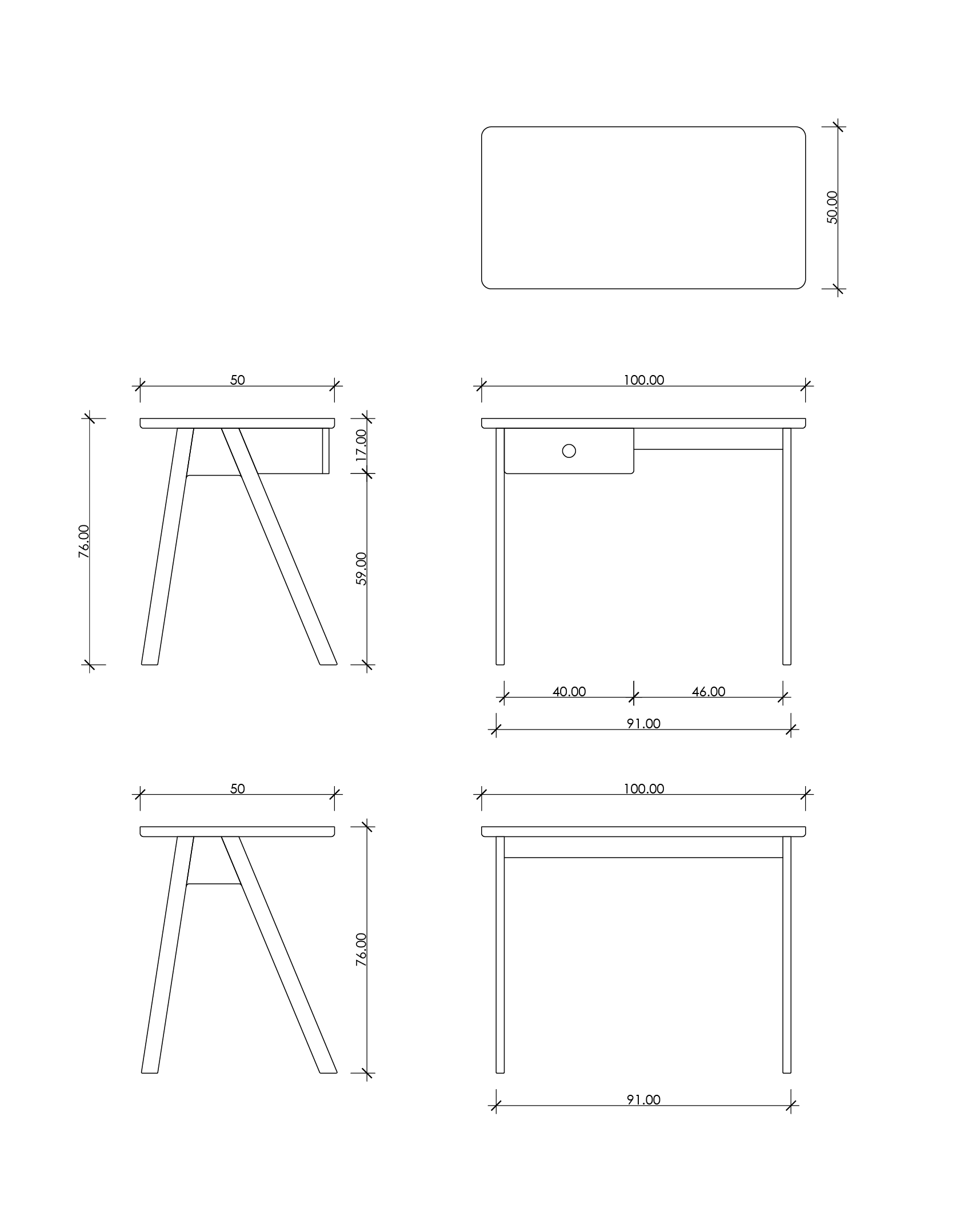 Studying the space, finding what’s the most appropriate spot to focus and it’s probably where Stud stands. The desk was designed in a way that guarantees the most convenient way of setting up your working area. Legs going diagonally take up the least space possible, whilst still providing the highest level of support. A desktop feels like just the right size - not overwhelmingly big and not too small, so that you can fit all of your working/studying gear. You can choose option with or without a drawer.