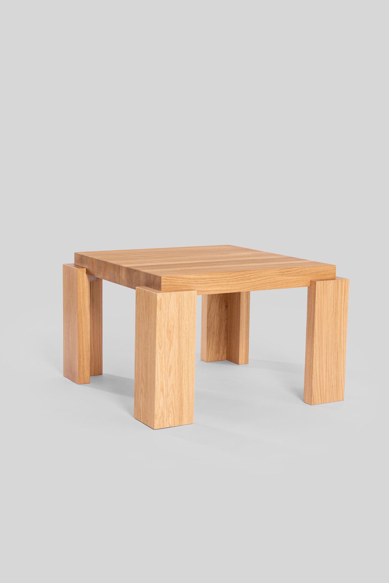 Taro to stolik kawowy o monumentalnej prostocie. Jego forma opiera się na proporcjach i masie. Sześciocentymetrowy blat spoczywa na czterech szerokich nogach, tworząc bryłę o rzeźbiarskim charakterze.