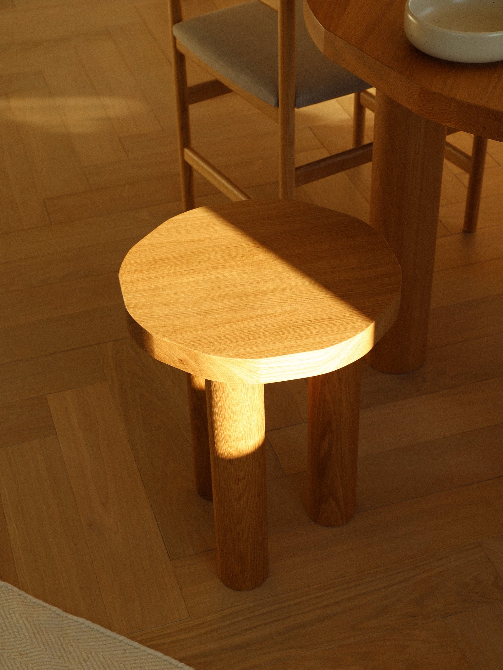Zaokrąglony, nieregularny blat wspierany na trzech cylindrycznych nogach, które nadają całości wyważoną lekkość i rytm. To mebel, który nie tylko uzupełnia przestrzeń, lecz sam staje się jej punktem skupienia.