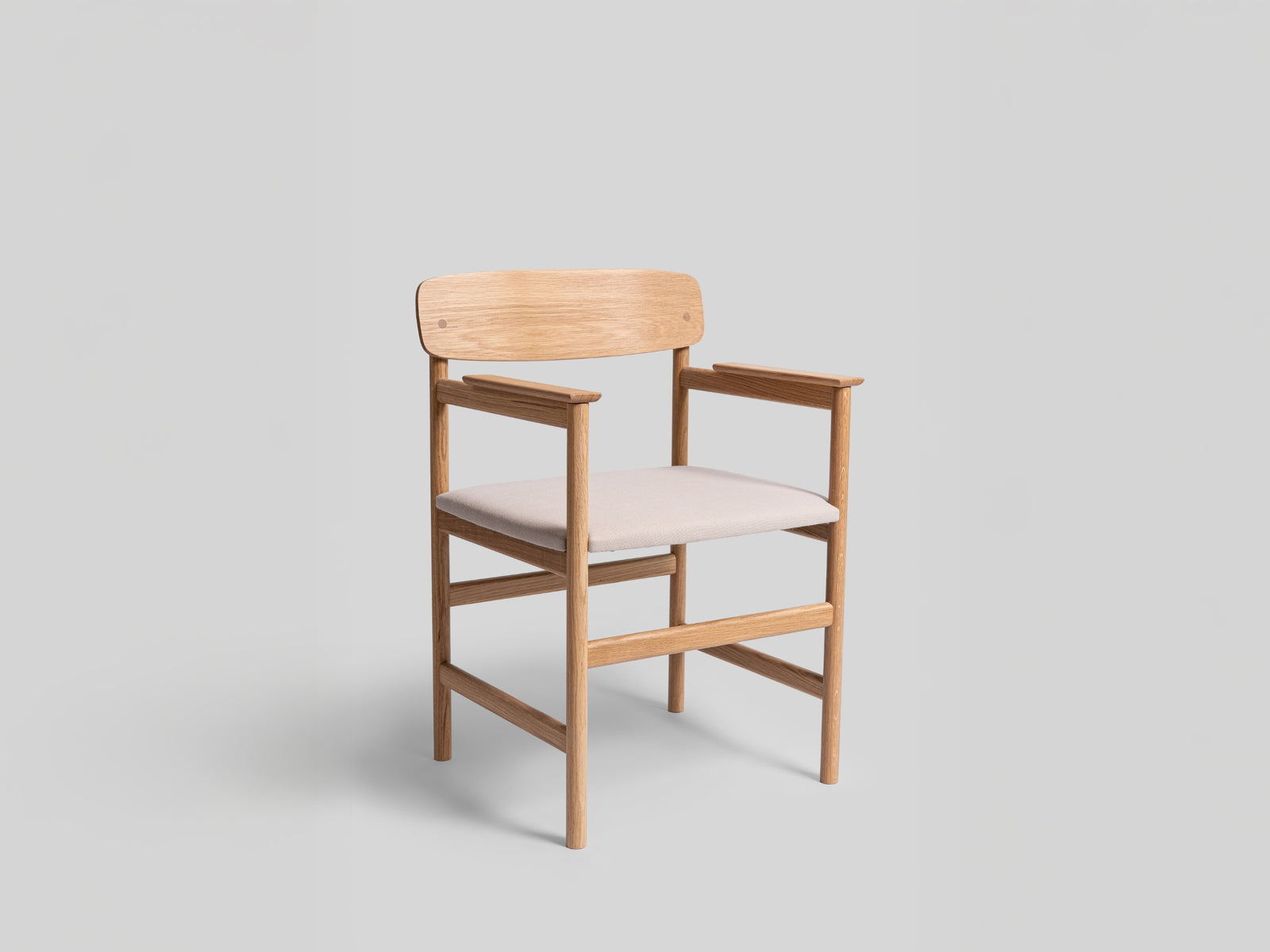 Krzesło Ari zachwyca prostotą i naturalną elegancją. Jego forma opiera się na równowadze pomiędzy funkcjonalnością a lekkością wizualną. Smukłe nogi i delikatnie zaoblone krawędzie podkreślają subtelny charakter projektu, a szerokie oparcie i podłokietniki zapewniają pełen komfort podczas siedzenia.