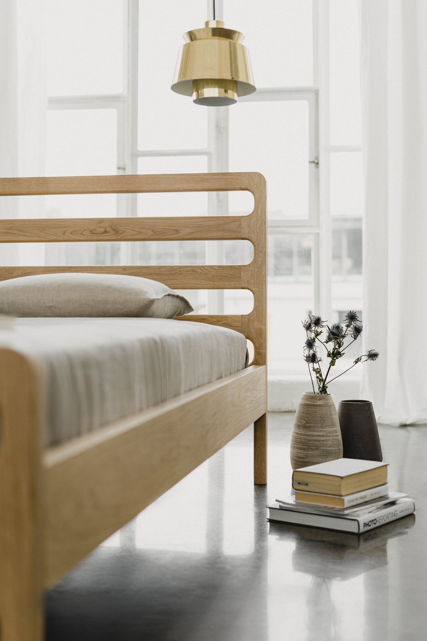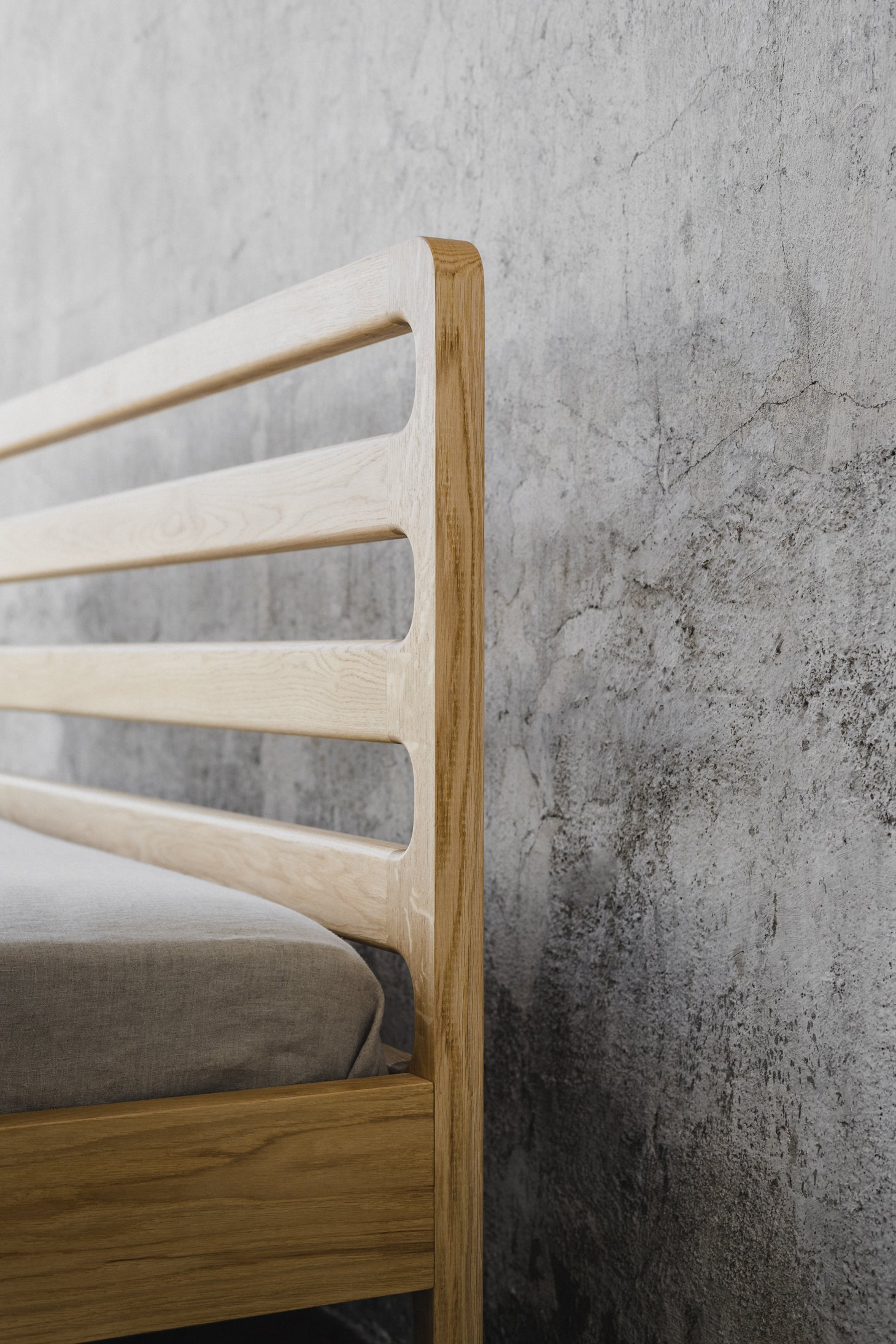 Rama łóżka Harmony nadaje pomieszczeniu ciepła i lekkości - to charakterystyczne atuty uzyskane dzięki naturalnemu odcieniu dębowego drewna. Istotę naszego designu stanowi minimalizm przepleciony z przemyślanym i nieprzypadkowymi elementami, których funkcjonalność wykracza poza walory estetyczne. Prosta forma łóżka została wzbogacona o efektowny, ażurowy zagłówek, który buduje nienachalny klimat w sypialni - nie stoi w kontrze do tła, a wręcz je uwydatnia. Harmony to projekt stworzony dla miłośników tworzenia błogiej, niczym niezmąconej atmosfery spokoju.