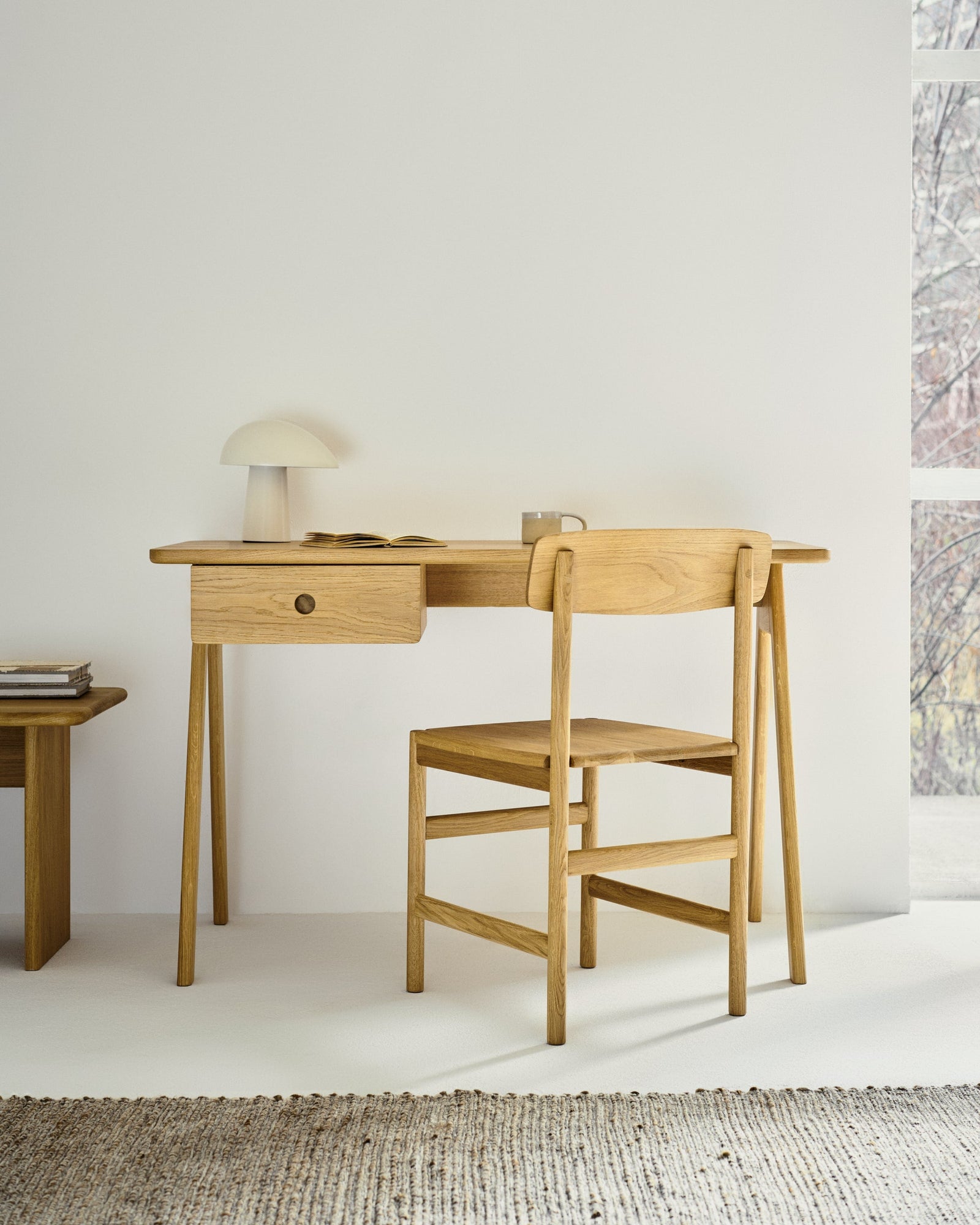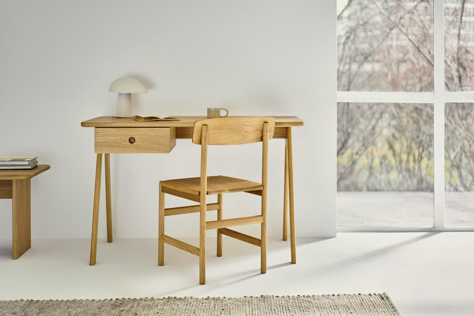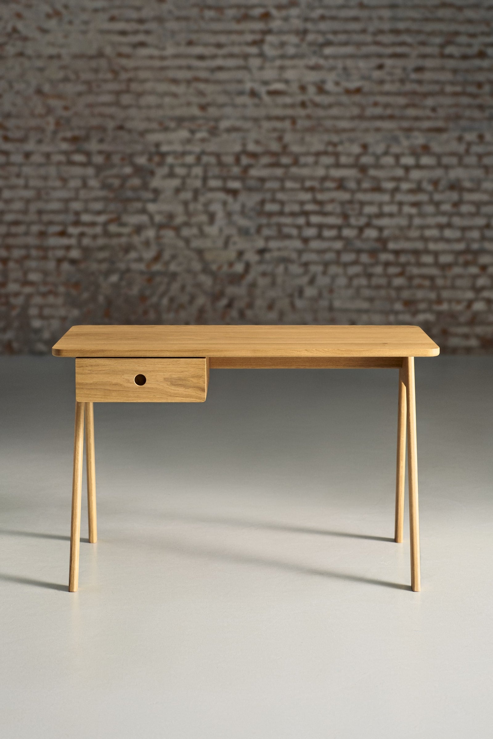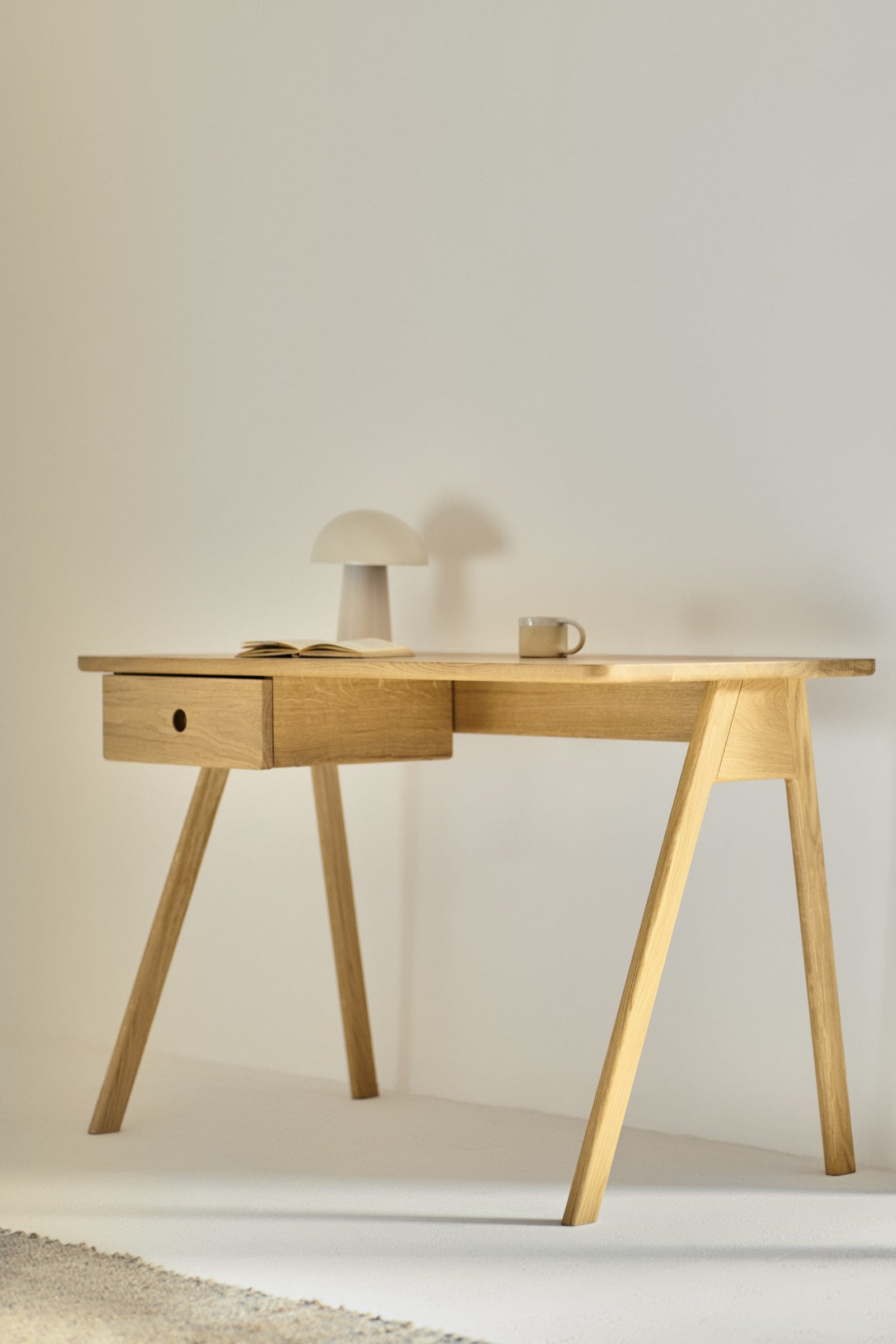 Studiujesz przestrzeń, znajdujesz najbardziej odpowiednie miejsce, w którym najłatwiej jest się skupić i tam najpewniej stoi Stud. Biurko zostało zaprojektowane w taki sposób, aby zapewnić najwyższy stopień wygody i ułatwić organizację Twojej przestrzeni do pracy. Nogi zostały ułożone w ukośny sposób, co w znacznym stopniu pozwala zaoszczędzić miejsce, nie ujmując tym samym ogólnej stabilności biurka. Blat Stud skrojony jest do idealnych wymiarów – nie przytłaczająco dużych, ani niezbyt małych, aby jeszcze łatwiejszym okazało się planowanie miejsca. W zależności od potrzeb, możesz zdecydować się na wariant z lub bez szuflady.