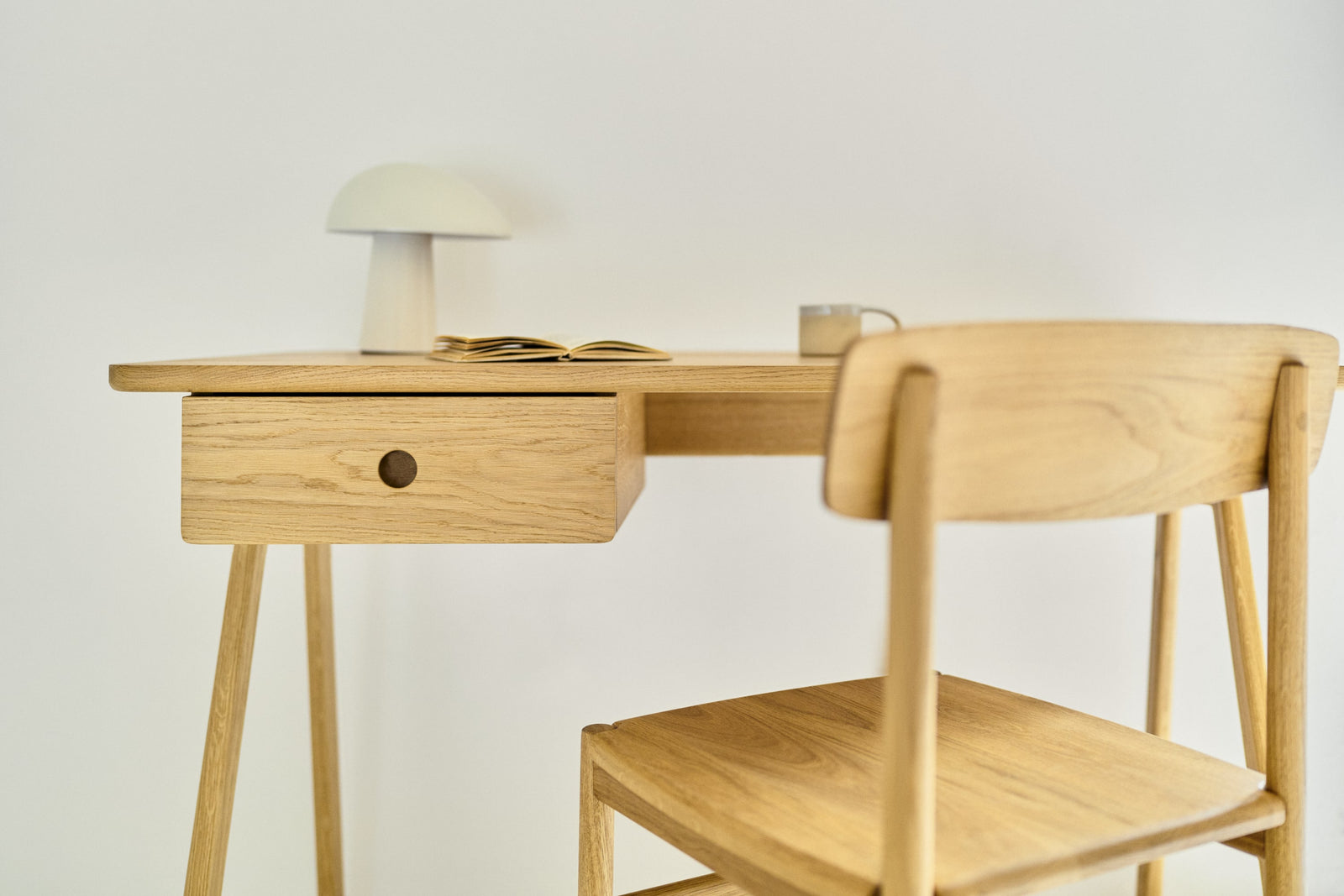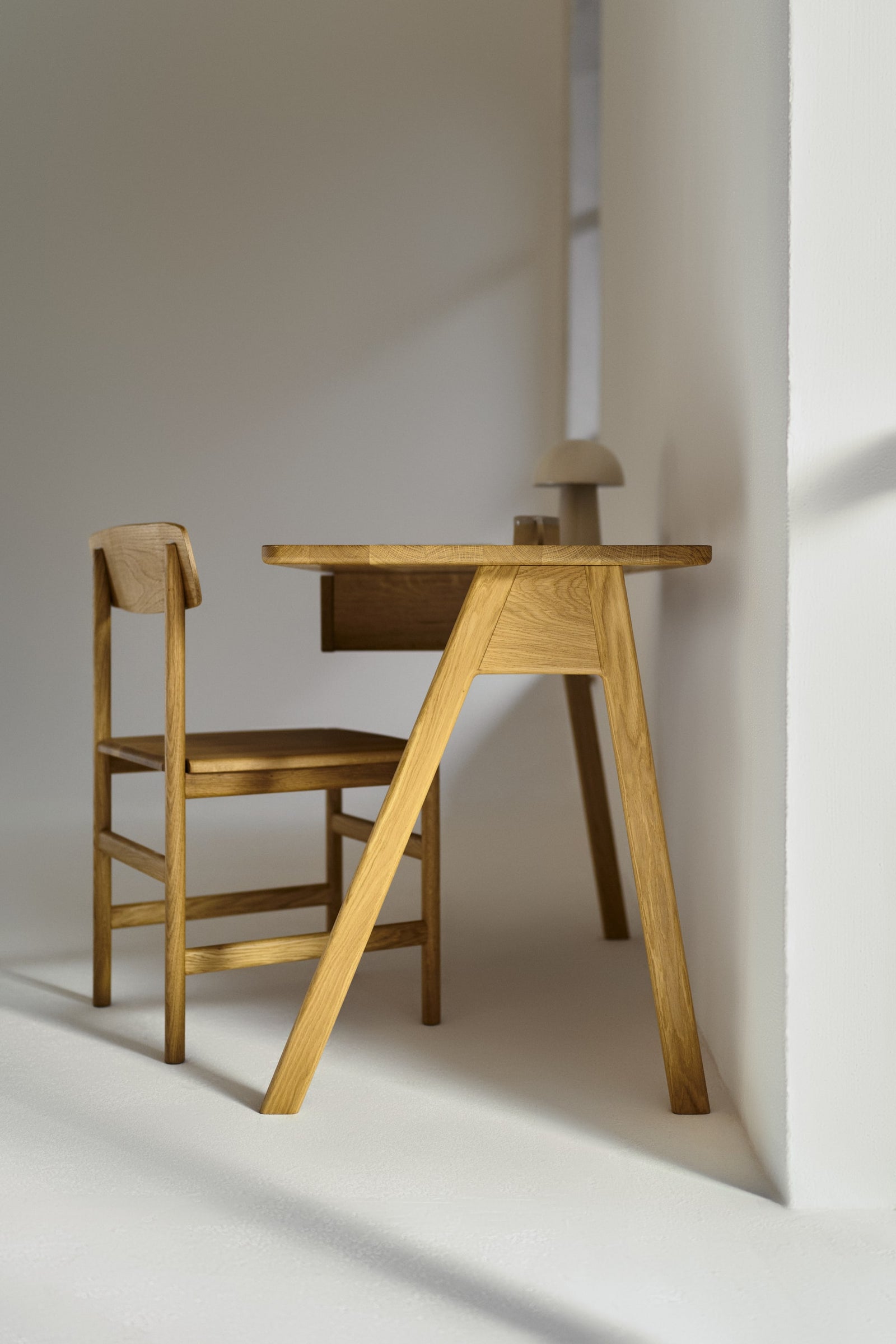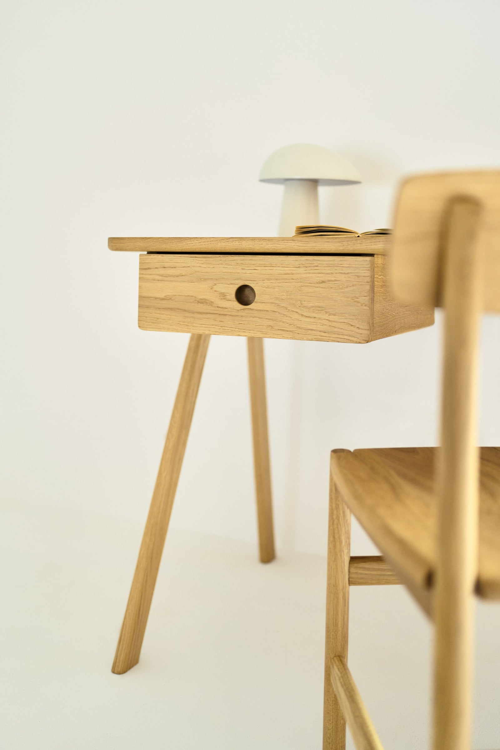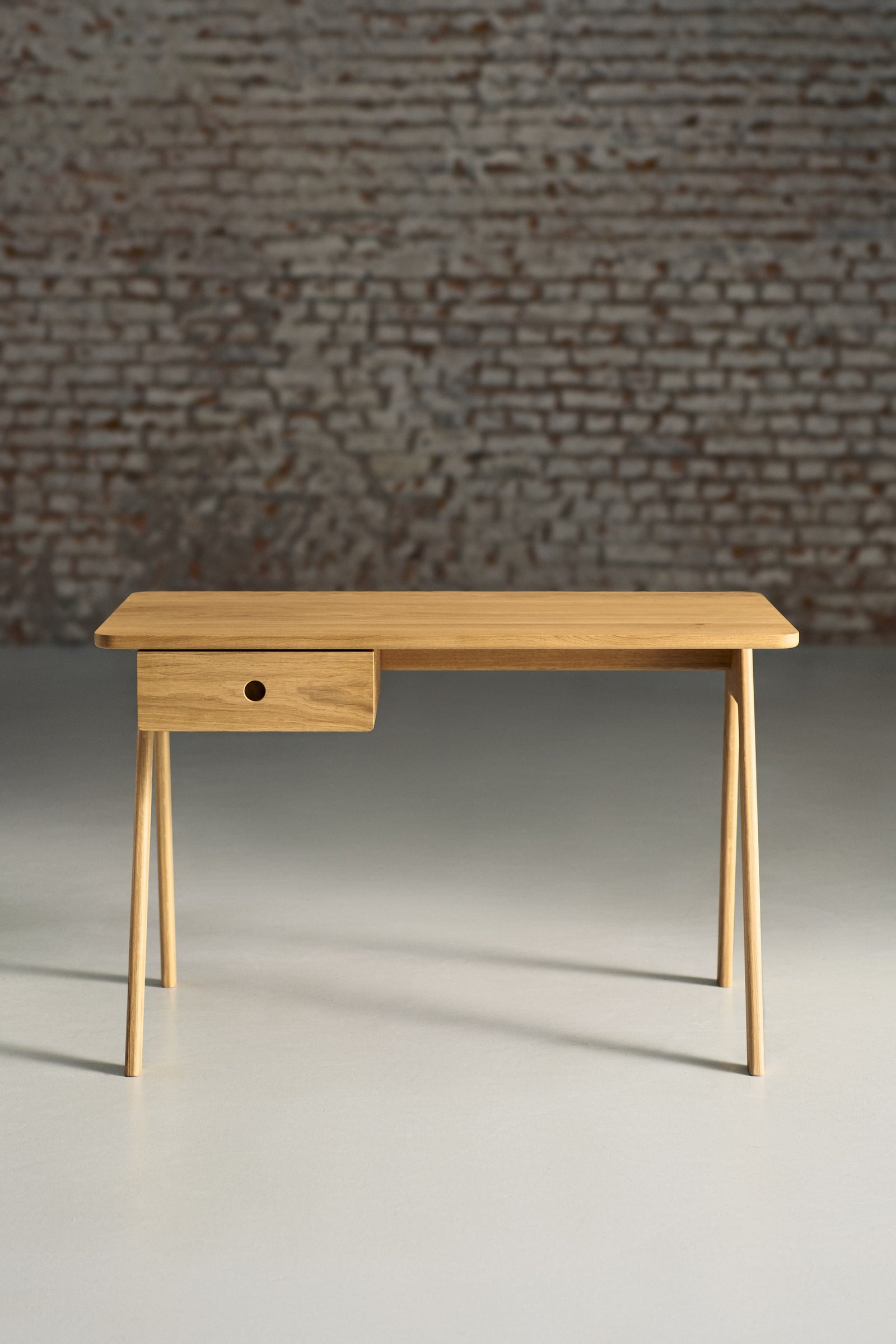 Studiujesz przestrzeń, znajdujesz najbardziej odpowiednie miejsce, w którym najłatwiej jest się skupić i tam najpewniej stoi Stud. Biurko zostało zaprojektowane w taki sposób, aby zapewnić najwyższy stopień wygody i ułatwić organizację Twojej przestrzeni do pracy. Nogi zostały ułożone w ukośny sposób, co w znacznym stopniu pozwala zaoszczędzić miejsce, nie ujmując tym samym ogólnej stabilności biurka. Blat Stud skrojony jest do idealnych wymiarów – nie przytłaczająco dużych, ani niezbyt małych, aby jeszcze łatwiejszym okazało się planowanie miejsca. W zależności od potrzeb, możesz zdecydować się na wariant z lub bez szuflady. Wersja z szufladą.